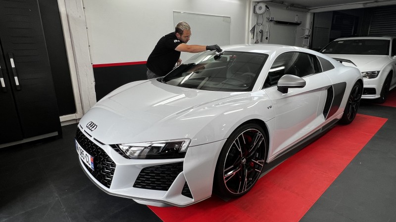 Dans le cadre de notre engagement envers la satisfaction du client à Brive-la-Gaillarde, nous proposons également la pose de traitement céramique sur les vitres de votre Audi R8 V10. Cette option offre non seulement une protection contre les éléments, mais aussi une amélioration de la visibilité par tous les temps.